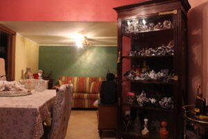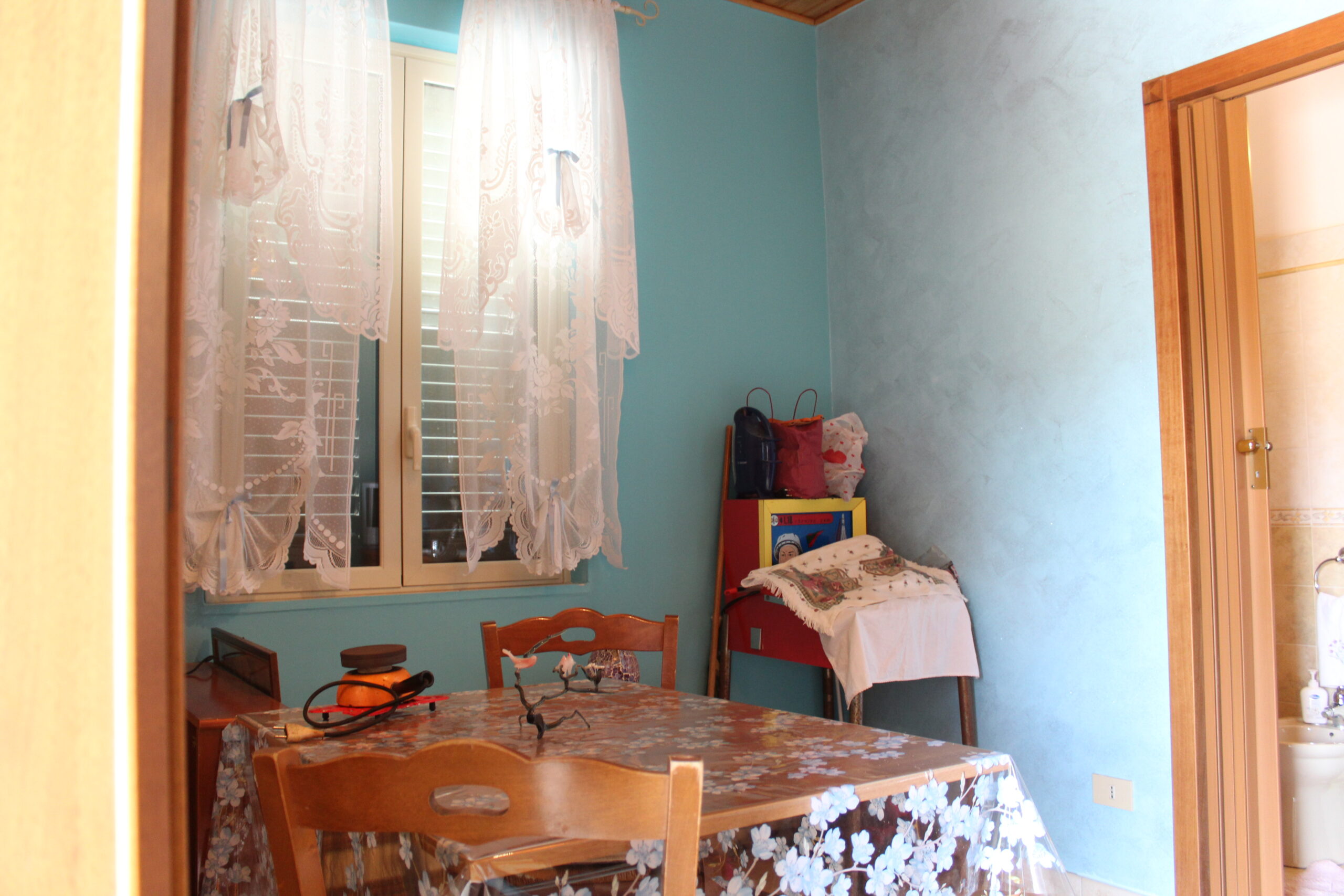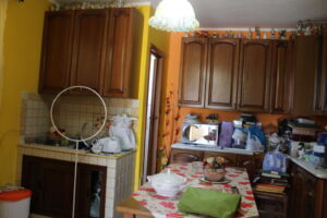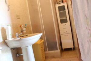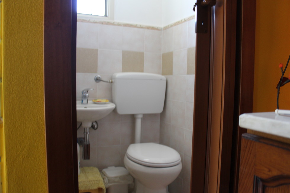 Il piano terra è composto da un ingresso che si apre su un terrazzo chiuso e trasformato in veranda, una cucina soggiorno, un servizio e un saloncino di 20 metri quadrati.